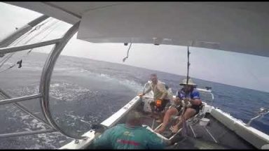 Marlin jumps in boat AGAIN!”