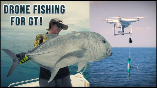 Use a drone to drop a lure into a pack of big Giant Trevally